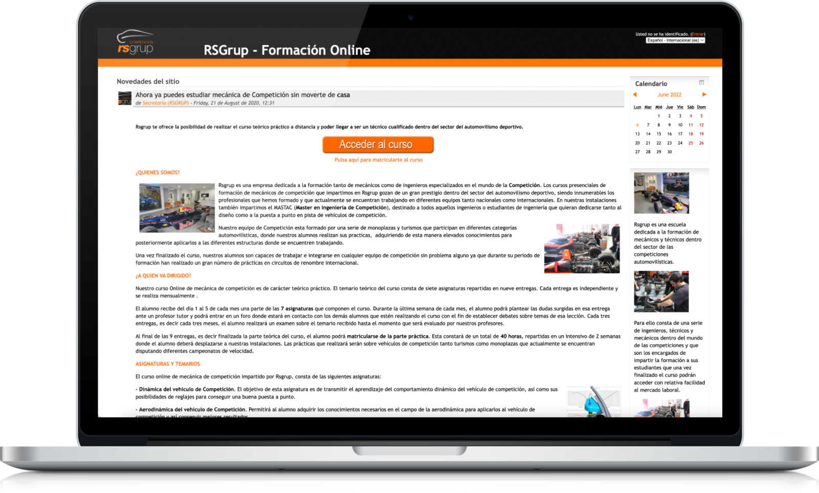 El curso online teórico práctico de RSGRUP está enfocado a todos aquellos alumnos que por motivos de tiempo no puedan realizar sus estudios de mecánica de competición de manera presencial.